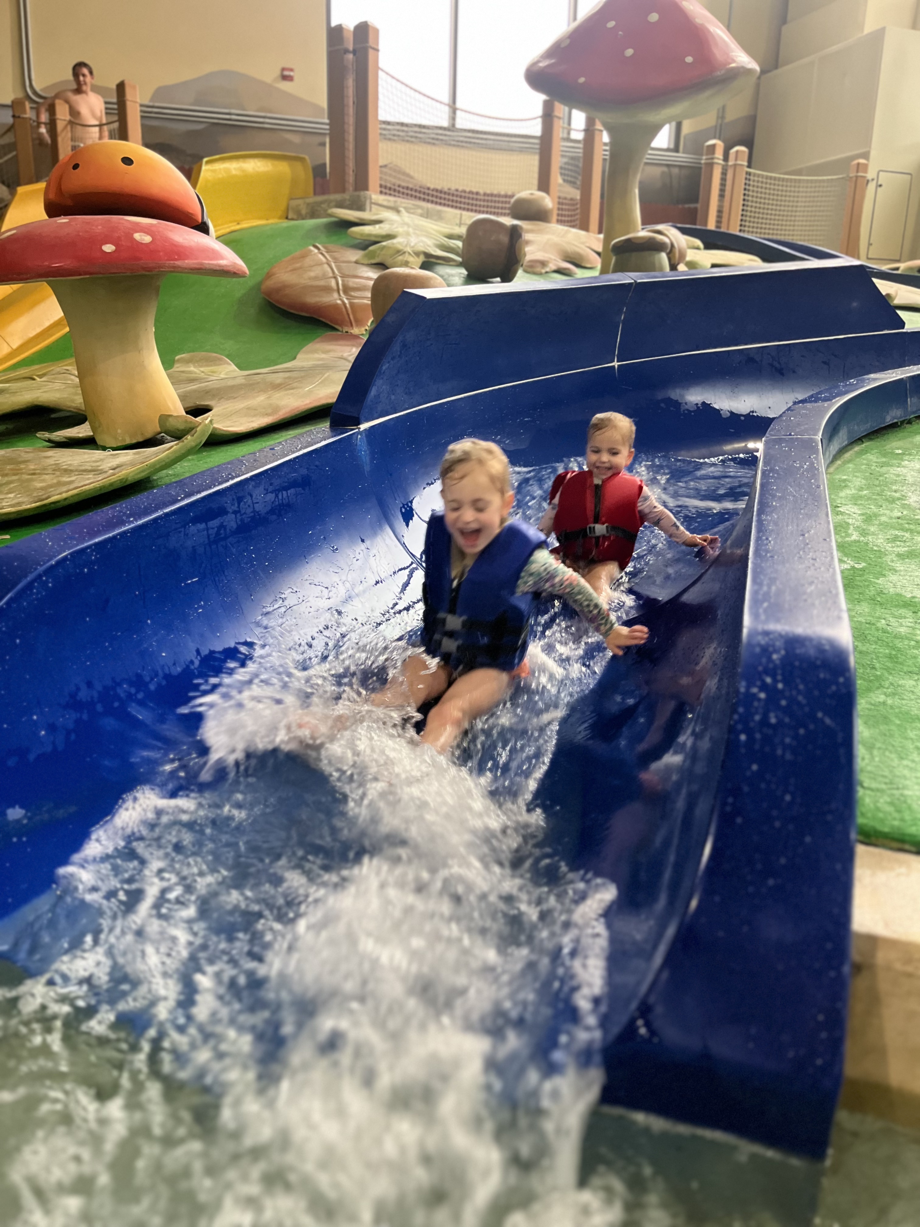 Pack multiple swimsuits & robes or swim coverups for everyone! Wet swimsuits can take a while to dry in your room, so it’s nice to have a dry one ready to go. You’ll also want water shoes—both for the water park and to walk around the lodge, especially in cooler months.