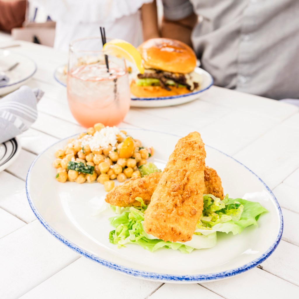 Our girls couldn’t get enough of the fried shrimp and fish fingers. They also have plenty of kid-friendly favorites like pancakes, brioche French toast with powdered sugar and syrup, eggs and bacon, cheeseburgers and grilled chicken breasts.