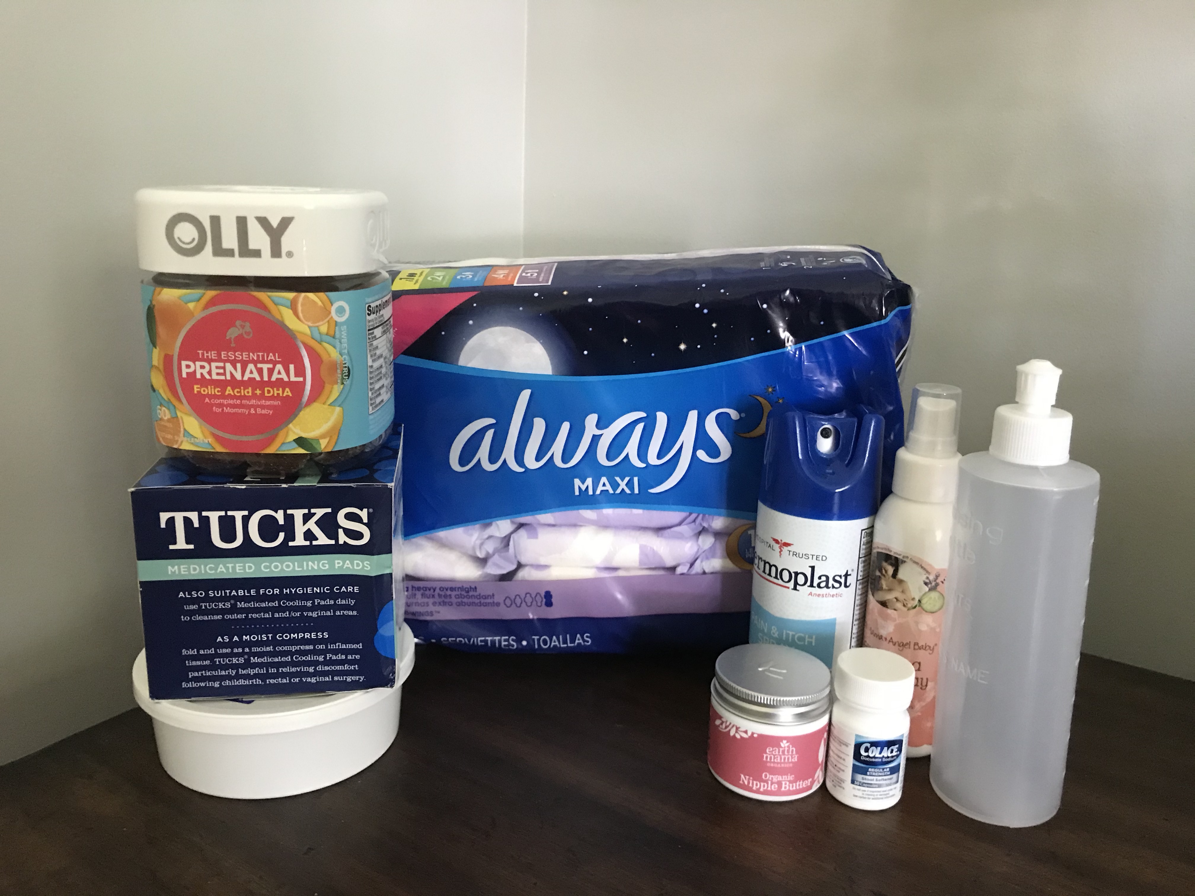 5. Tucks – These are circular medicated pads with witch hazel that the hospital also gives you. You place them on your pad and they absorb onto your skin to help reduce the pain and any urge to itch while your lady bits heal. I had bought them for home as well. (Amazon~$7)