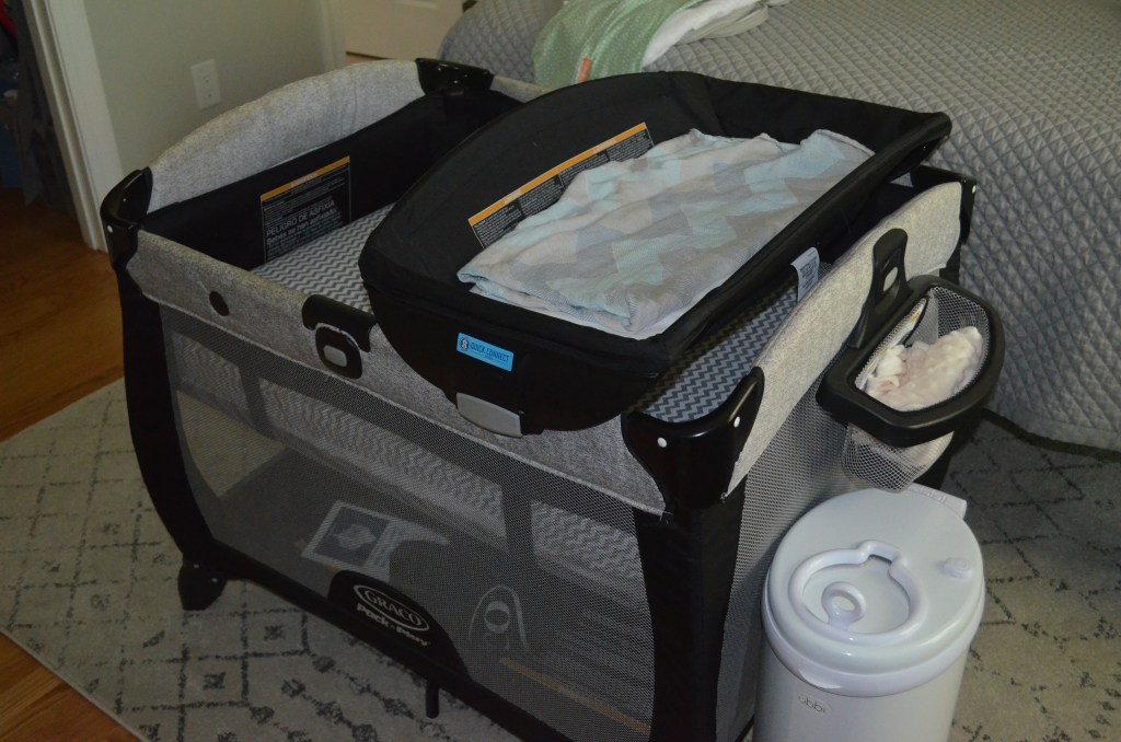 - Finding a pack n’ play to add your your registry is overwhelming. Everybody/baby and their mama has an opinion of what you need as far as a bassinet. If you have space in your bedroom, I highly recommend this one. Not only will it grow with your baby, but it serves multiple functions, which saves money. Yay! This can be your baby bassinet, a removable nap station, a changing table, a play pen, and its super easy to break-down and travel with you anywhere. I personally like the neutral patterns and colors, so it fits in with your home instead of standing out like an eye sore. This particular model has a 3 hole storage bin on the side which is nice for wipes, diapers and misc. baby items.