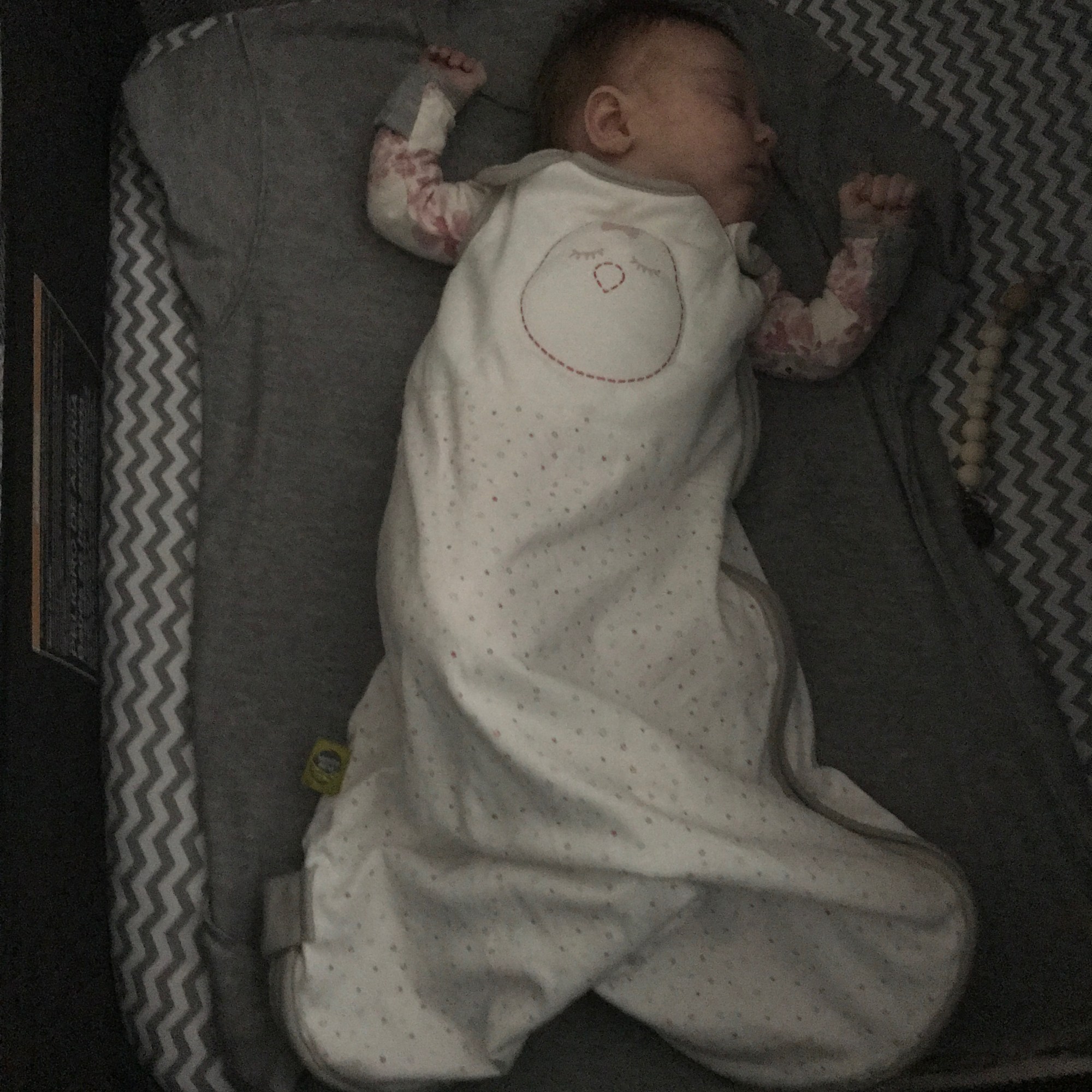I decided to give it a whirl. I put her in the Nested Bean sleep sack I had purchased from a Consignment Shop (for $15) and tucked her in. I decided to leave the swaddle zipped up around her body, but leave her hands free. Y’all, I laid her down, she fell asleep and she slept for 11 HOURS! ELEVEN HOURS! (I was happy for her, but you know I woke up every 4 hours because my boobs were leaking and I was concerned she wasn’t breathing or something.)