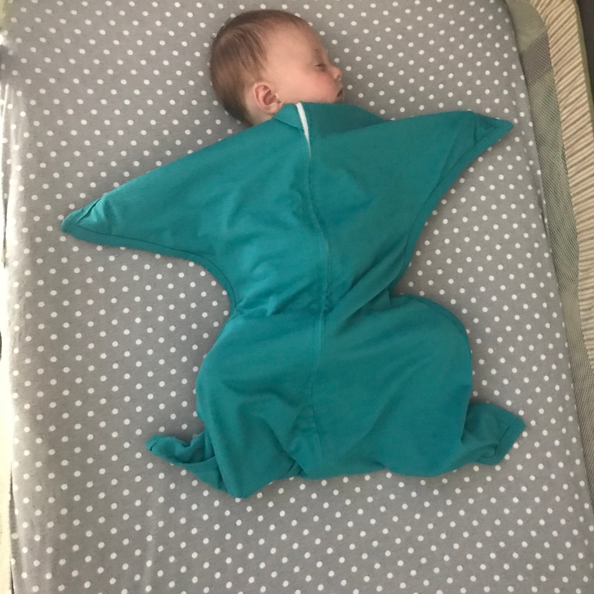 + I love that the starfish design allows an easy transition out of a swaddle. The wing shaped arms allows for the startle reflex to still be “caught” and it keeps her hands covered so they are warm and unable to scratch her face.