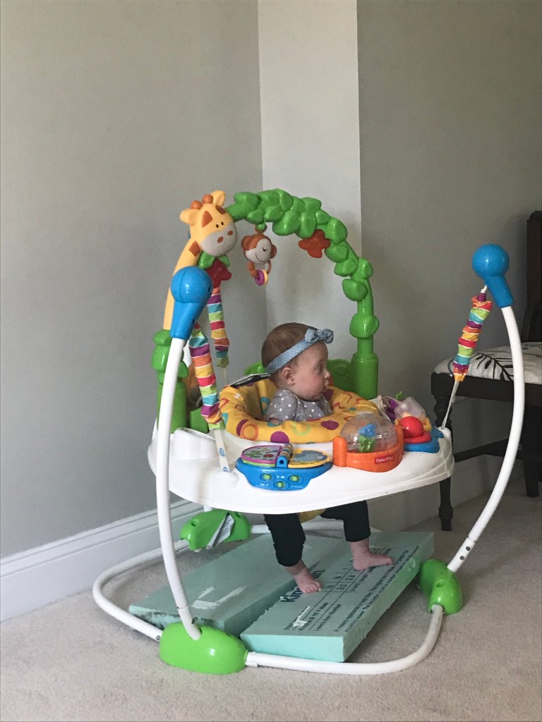 Another great thing to have is a baby carrier. She loves to sit close to me and it allows my hands to be free. We have the Ergobaby 360 (allows babies to face outward) and she loves it! I can type and stand at my kitchen bar to get some work done during those awake periods or when she is refusing a nap.