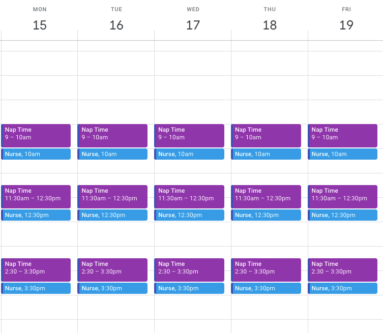 I also recommend putting “place holders” or “fake meetings” on your calendar during your baby’s awake time. This will allow you time to get up, move around, change diapers, play with them and prevent others from scheduling back to back calls. It has helped me tremendously!